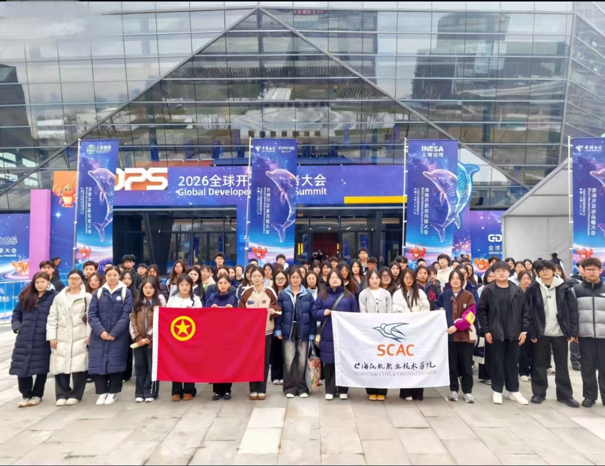 2026年3月27日至29日,2026全球开发者先锋大会(GDPS)在上海徐汇西岸国际会展中心盛大启幕。我院80余名青年志愿者以“专业素养、青春热情”投身服务,通过“三轮选拔+专项培训”组建专业团队,以“岗前定责、岗中协同、岗后复盘”全流程管理,为全球开发者打造“零障碍”参会体验,用行动诠释“奉献、友爱、互助、进步”的志愿精神,展现新时代民航学子的责任担当。