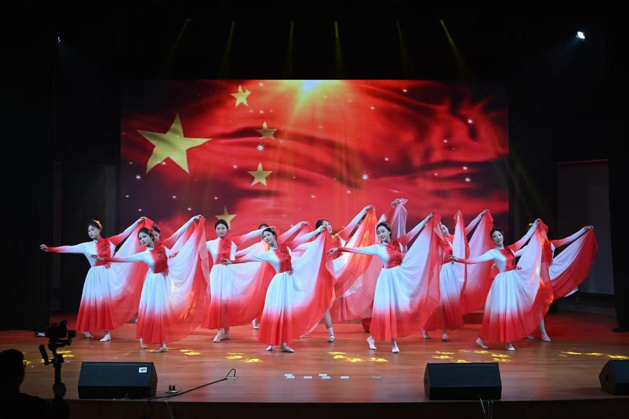 在上篇收尾环节,舞蹈社同学以《我爱你中国》登场,用灵动的肢体语言诠释对祖国的赤诚热爱,延续活动的爱国情怀。