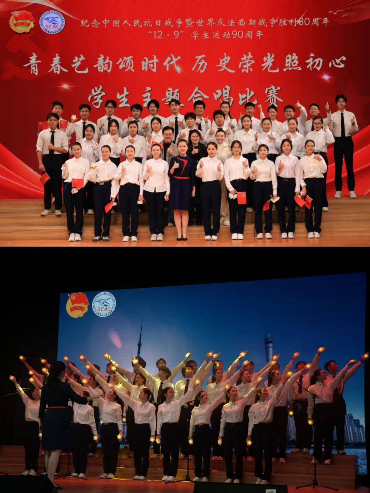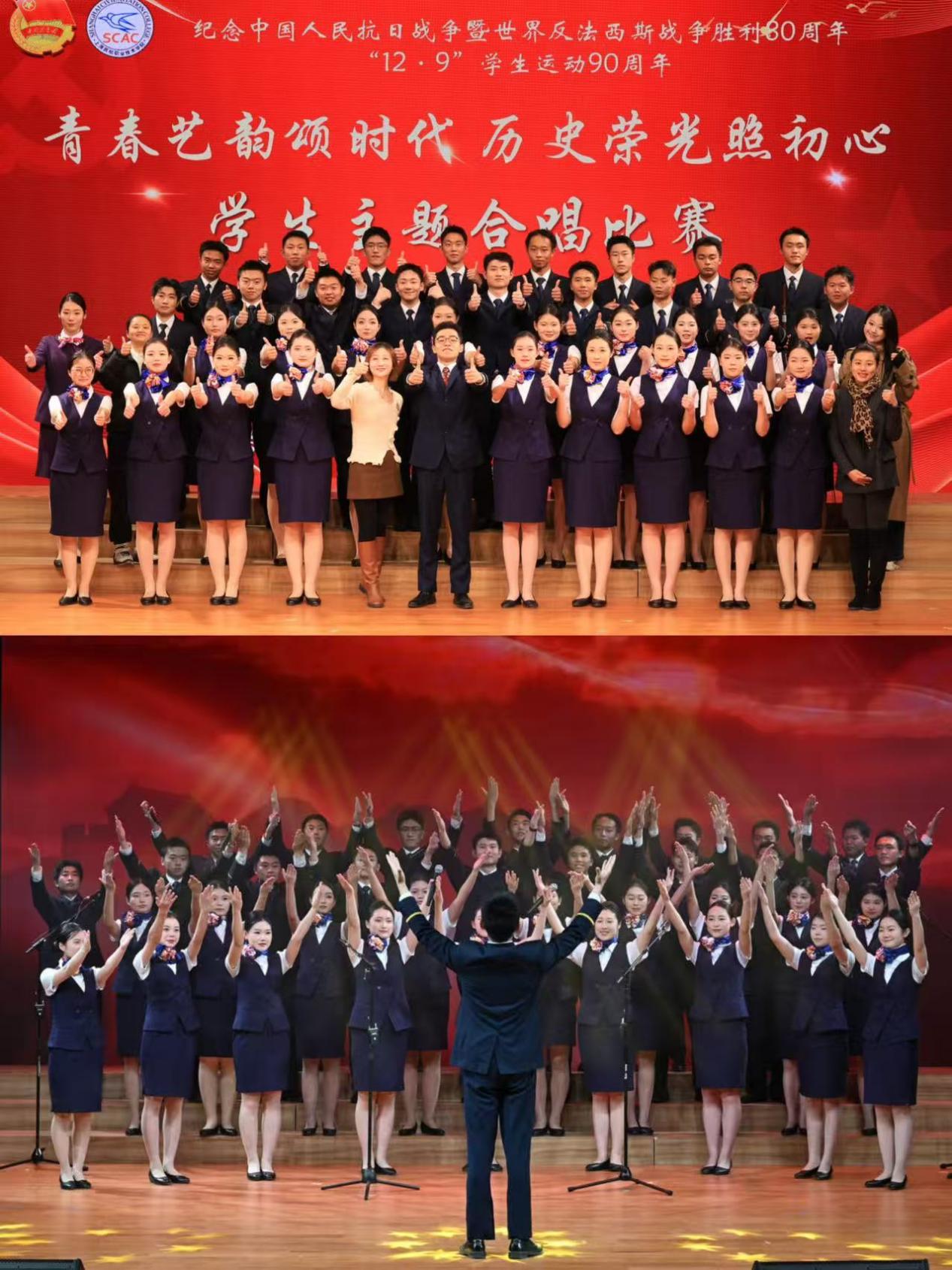 当青春的旋律渐渐归于宁静,它所激荡起的回响却将长久萦绕于心。此次活动不仅是一场音乐的盛宴,更是一次精神的共振,民航人共同完成了一次对民族根脉的追寻、对集体身份的确认以及对未来使命的思考。纪念中国人民抗日战争暨世界反法西斯战争胜利八十周年,我们铭记的,是历史的悲壮与荣光;纪念“12·9”学生运动90周年,我们肩负的,是时代的使命与担当。愿民航学子永葆这份初心,在未来的蓝天上,书写无愧于时代、无愧于祖国的壮丽篇章!